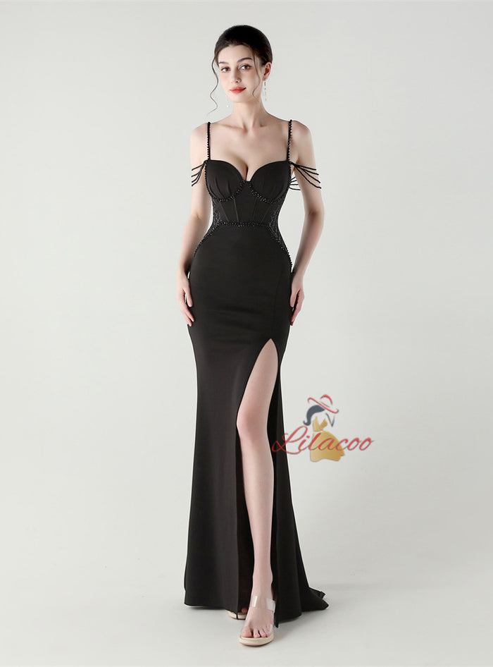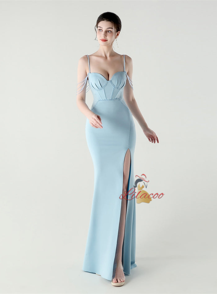 Mermaid Spaghetti Straps Beading Split Prom Dress