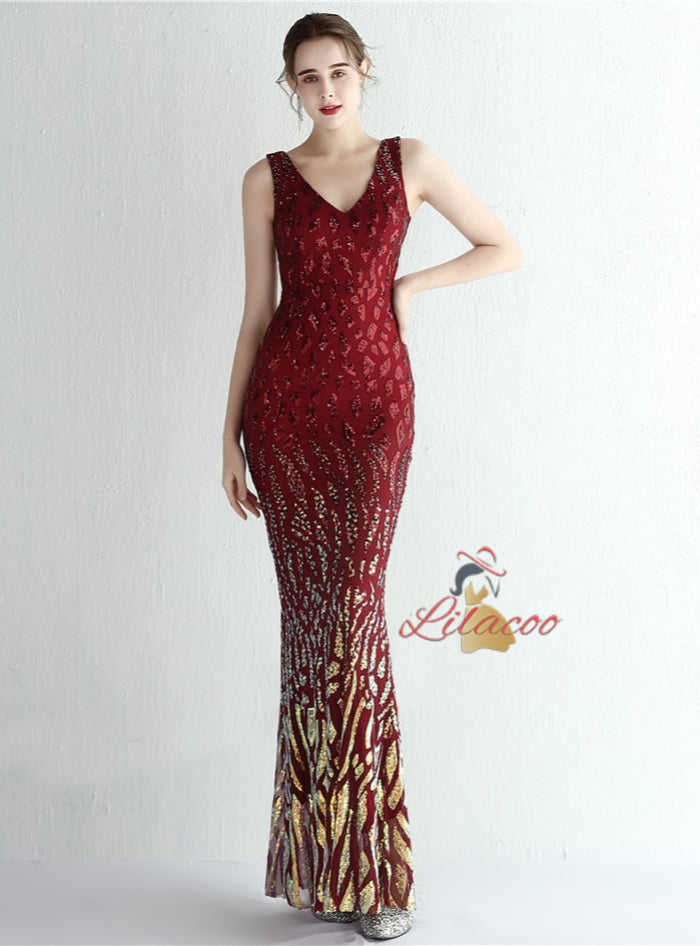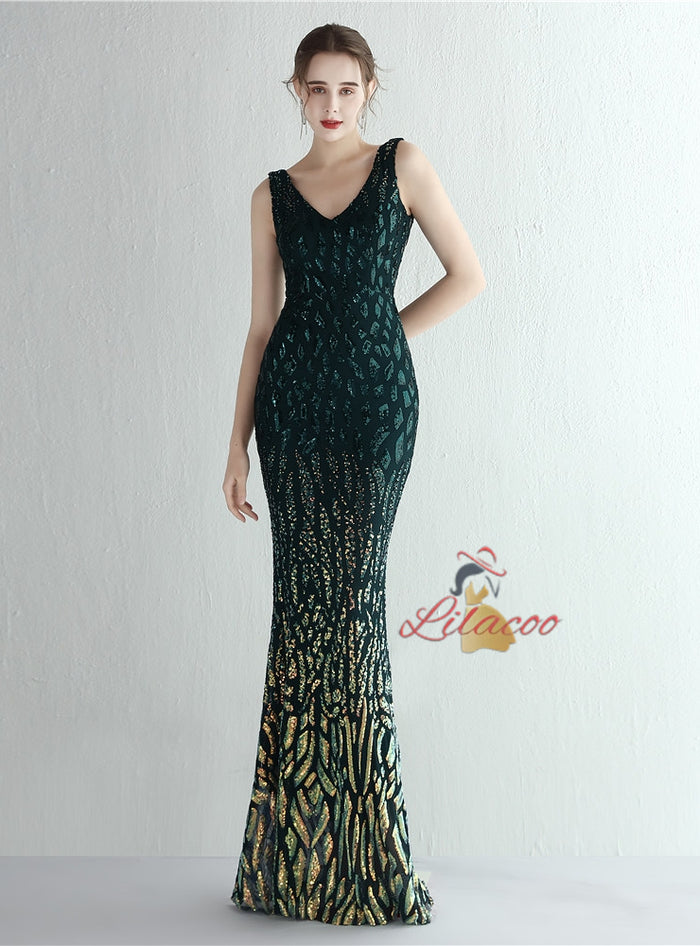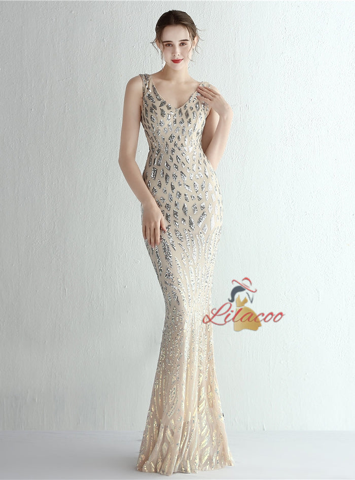 Mermaid V-neck Sequins Prom Dress