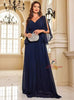 Navy Blue Chiffon Short Sleeve Prom Dress
