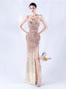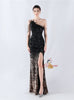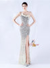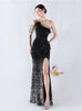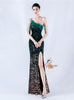 One Shoulder Mermaid Sequins Feather Split Prom Dress
