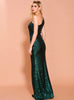 One-shoulder Sequined Sleeveless Evening Dress With Split