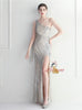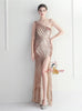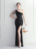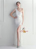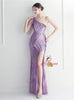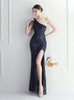 One Shoulder Sequins Beading Split Prom Dress