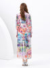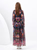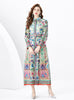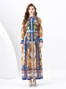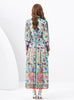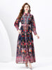 Palace Lapel Lantern Sleeve Long Retro Print Dress