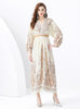 Palace V-neck Lantern Sleeve Printed Long Dress