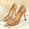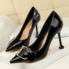 Patent Leather Pointed Metal Belt Buckle Shoes