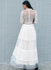 Perspective Stitching Long Sleeve Lace Gauze Wave Point Dress