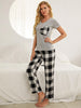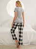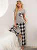 Plaid Heart-shaped Short-sleeved Pajamas Suit