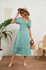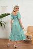 Pleated Short Sleeve Square Neck Plaid Dress