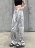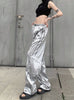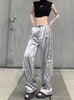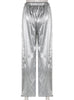 Pocket Silver Glossy High Waist Slacks