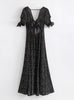 Polka Dot Dress Sexy Backless V Neck A-line Long Dress