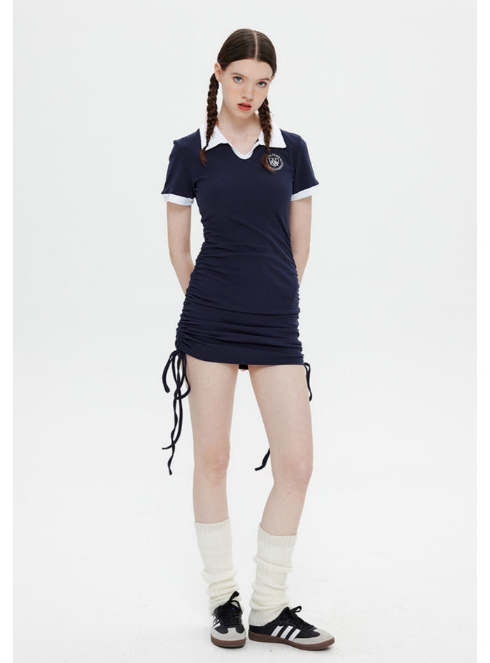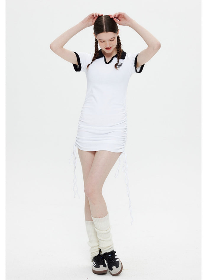 Define your style with the distinctive silhouette of this form-fitting white polo dress. Its smart collar and cuffed sleeves, highlighted by black trimming, offer a nod to the timeless tennis dress, reimagined for the modern woman. The embroidered badge on the chest elevates the piece with a sense of heritage and luxury. Crafted from a comfortable stretch fabric, this dress promises a snug fit that moves with you, making it a staple for those sunny days out or an active afternoon.