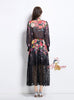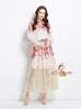 Printed Lantern Sleeve Printed Shirt+Lace Skirt Two-piece Suit