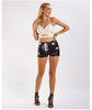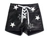 PU Leather Pants Elastic Metal Hole Rope Shorts