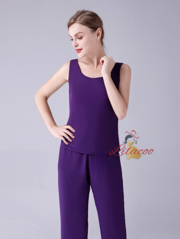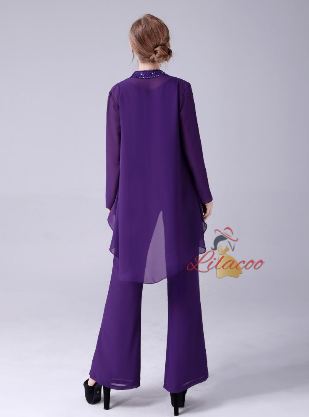 Purple Chiffon 3 Piece Beading Mother Of The Bride Dress