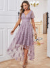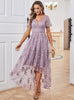 Purple Lace V-neck Puff Sleeve Prom Dress