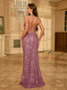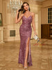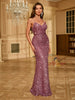 Purple Sequins Sapghetti Straps Split Prom Dress