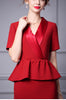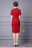 Red V-neck Short Sleeve Mother Of The Bride Dress