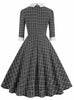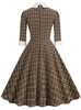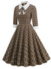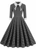 Retro Contrast Bow Plaid Long Sleeve Dress