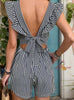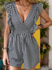 Retro Deep V-neck Ruffled Striped Jumpsuit