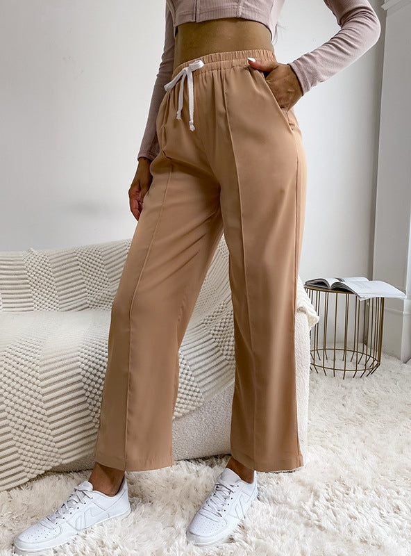 Retro Drawstring Elastic High Waist Wide Leg Pants