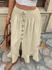 Retro Elastic Waist Button Split Skirt