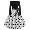 Retro Long Sleeve Polka Dot Print Dress