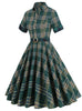 Retro Plaid Stitching Short Sleeve Dress