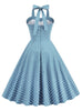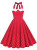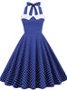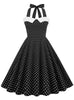 Retro Polka-dot Stitching Halter Big Swing Dress