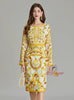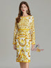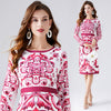 Retro Round Neck Printed Long-sleeved Slim Dress