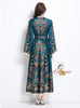 Retro Stand-up Breasted Flared Sleeve Printed Dress