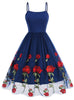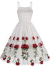 Retro Suspender Mesh Rose Embroidery Dress