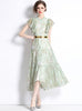 Round Neck Lotus Leaf Short Sleeve Printed Dress