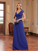 Royal Blue V-neck Cap Sleeve Beading Prom Dress