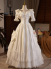 Satin Lace Short Sleeve Bow Wedding Dress