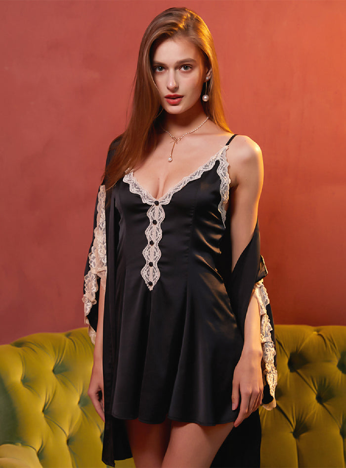 Satin Suspenders Ice Silk Nightgown