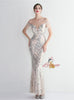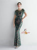 Scoop Neck Sequins Cap Sleeve Beading Prom Dress