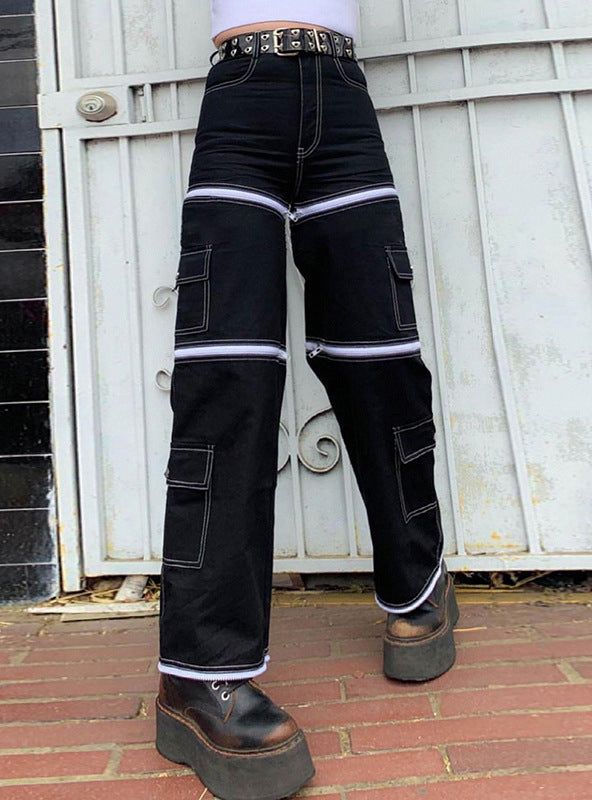 Sectional Zipper Splicing Personalized Jeans