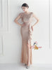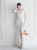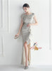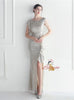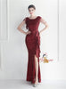 Sequins Cap Sleeve Beadin Split Prom Dress