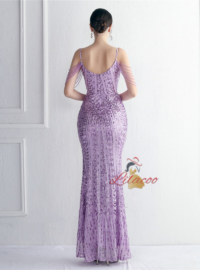 Sequins Mermaid Spaghetti Straps Beading Prom Dress