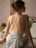 Sexy Ice Silk Nightgown Lace Perspective Pajamas