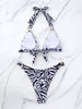 Sexy Printed Metal Ring Backless Bikini