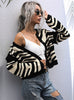 Short Contrast Striped Stitching Cardigan Sweater Jacket
