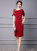 Short Sleeve Pleats Beading Mother Of The Bride Dress