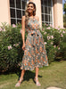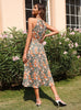 Sleeveless Lace-up Neck Pleated Print Dress