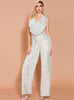 Sleeveless Sequined Jumpsuit Straight Trousers