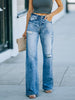 Slim and Ripped Wide-leg Denim Trousers Pant