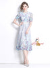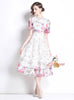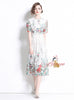 Slim Lace Print Short Sleeve Long Dress
