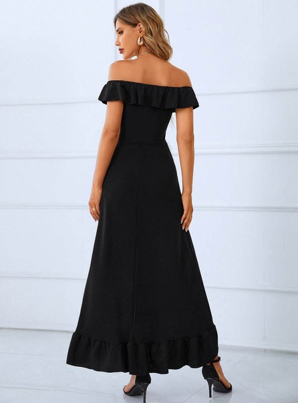 Solid Color Split Wooden Ear Party Dress