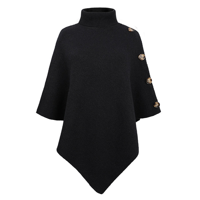 2023 Solid Color Turtleneck Sweater Shawl Cloak