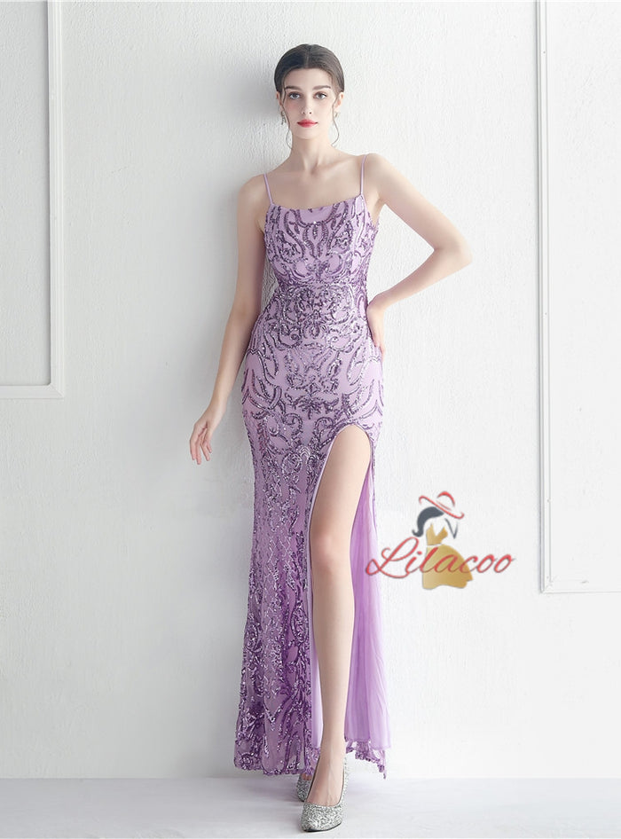 Spaghetti Straps Mermaid Sequins Prom Dress